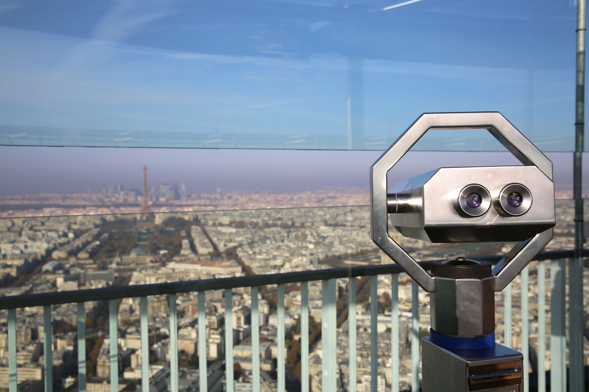 Der Blick vom Montparnasse Tower war weit, klar und sehr eindrucksvoll. Aus rund 210 Metern Höhe eröffnete sich ein nahezu vollständiger 360-Grad-Panoramablick über Paris. Besonders markant war die freie Sicht auf den Eiffelturm, da er – anders als von vielen anderen Aussichtspunkten – nicht vom eigenen Standort verdeckt wurde. Bei gutem Wetter reichte der Blick bis zu 40 Kilometer weit und machte die Struktur der Stadt mit ihren Boulevards, der Seine und den historischen Vierteln deutlich erkennbar.