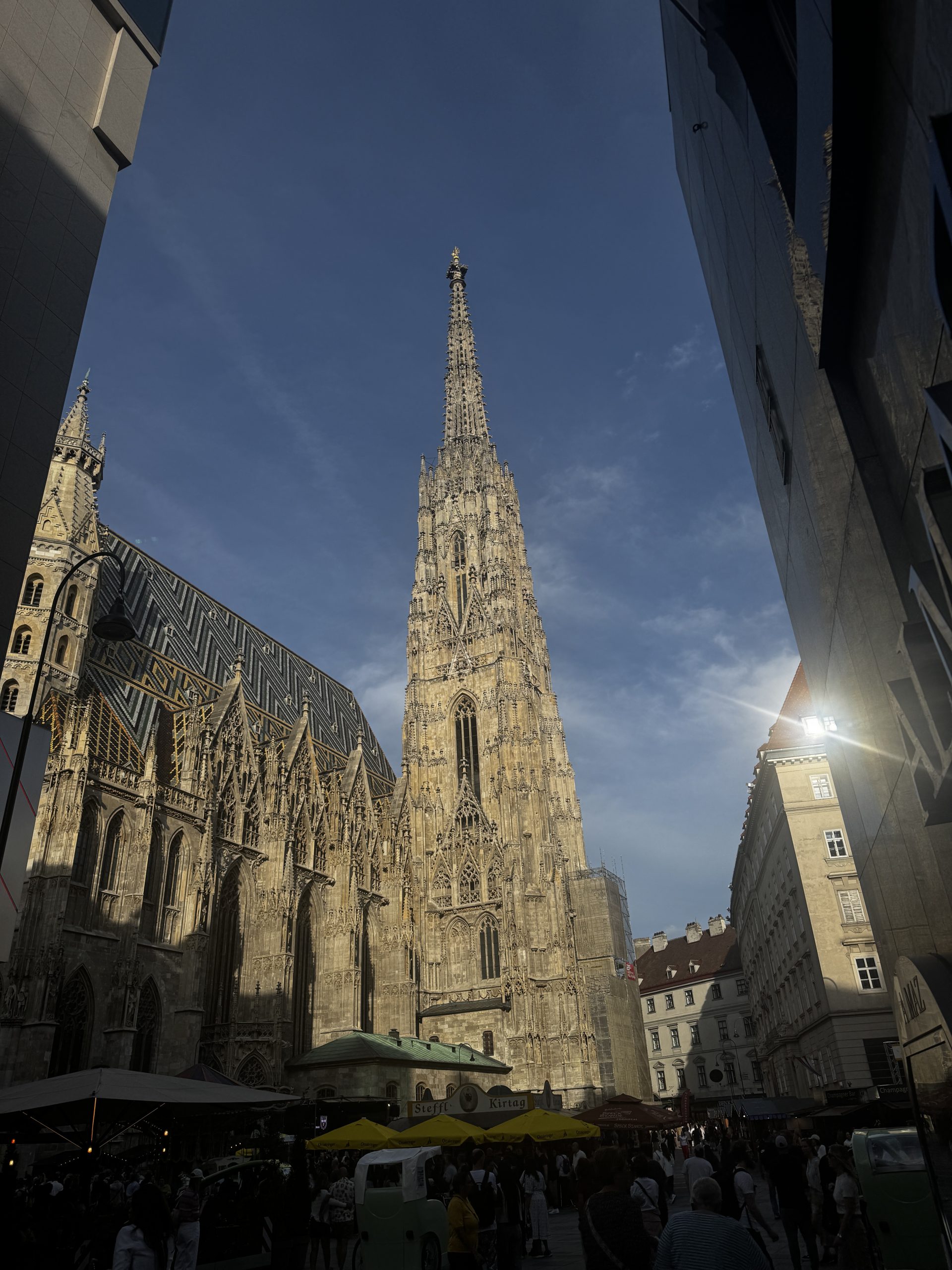 Je näher man dem Stephansplatz kommt, desto stärker verdichtet sich das Stadtgefühl. Der Blick auf den Stephansdom bildet einen beeindruckenden Höhepunkt des Spaziergangs und vermittelt eindrucksvoll die geschichtliche Bedeutung der Wiener Innenstadt. Rund um den Dom mischen sich Einheimische und Touristen, was dem Platz eine offene und internationale Stimmung verleiht.