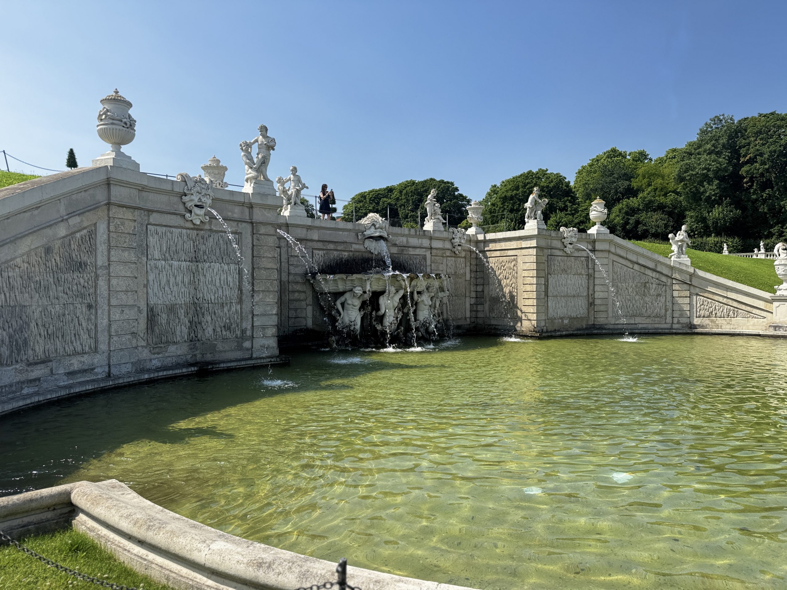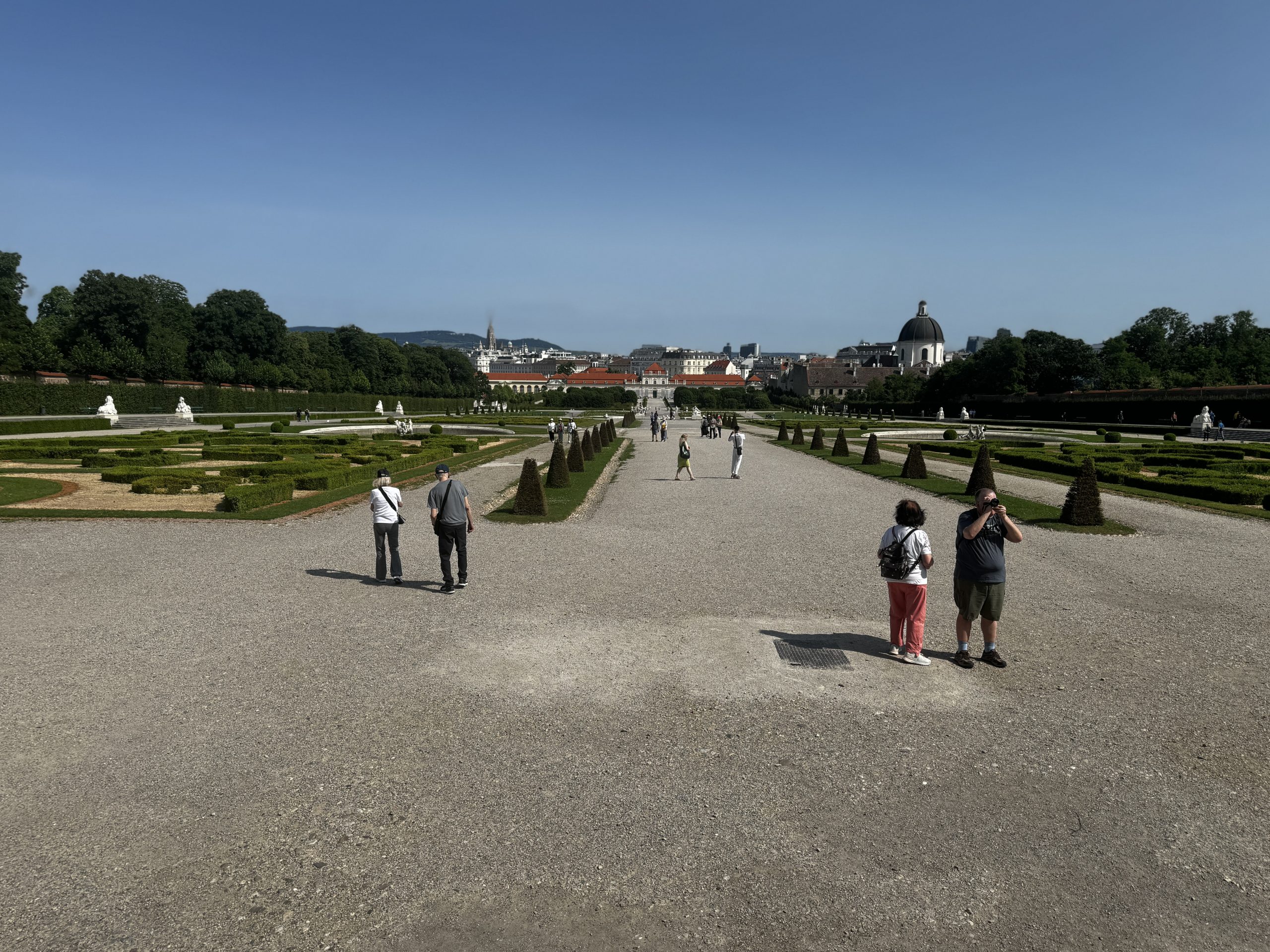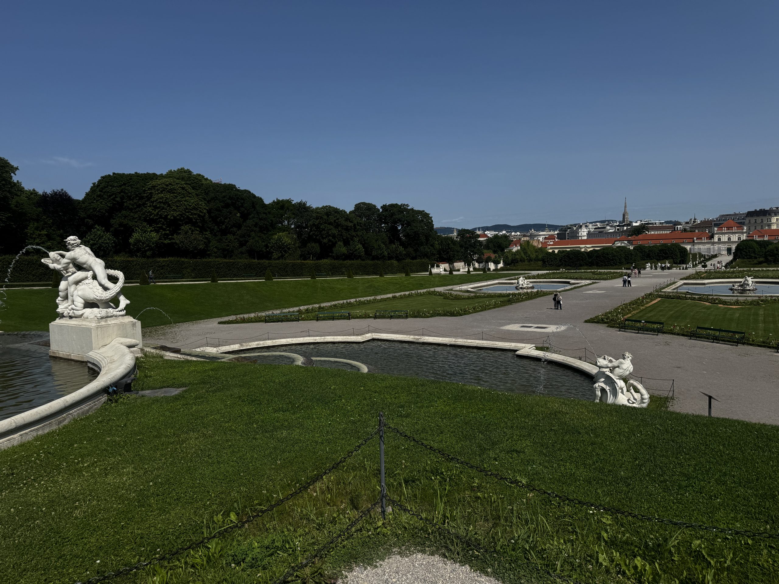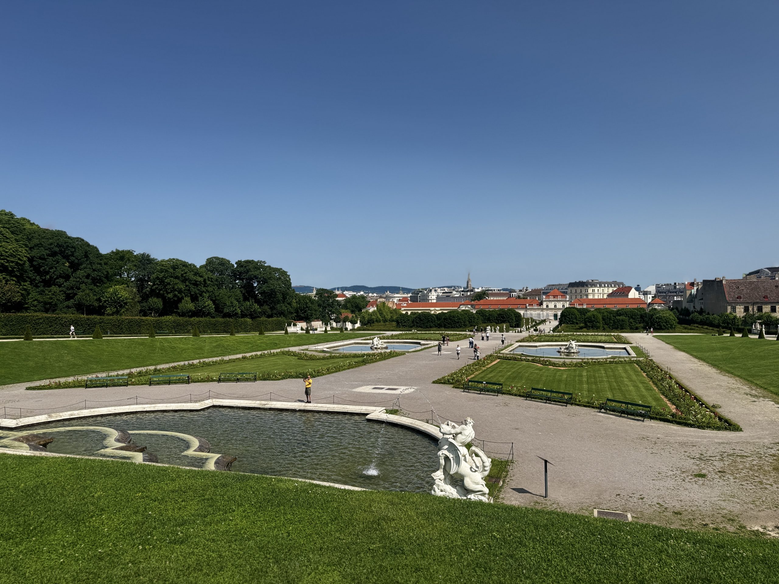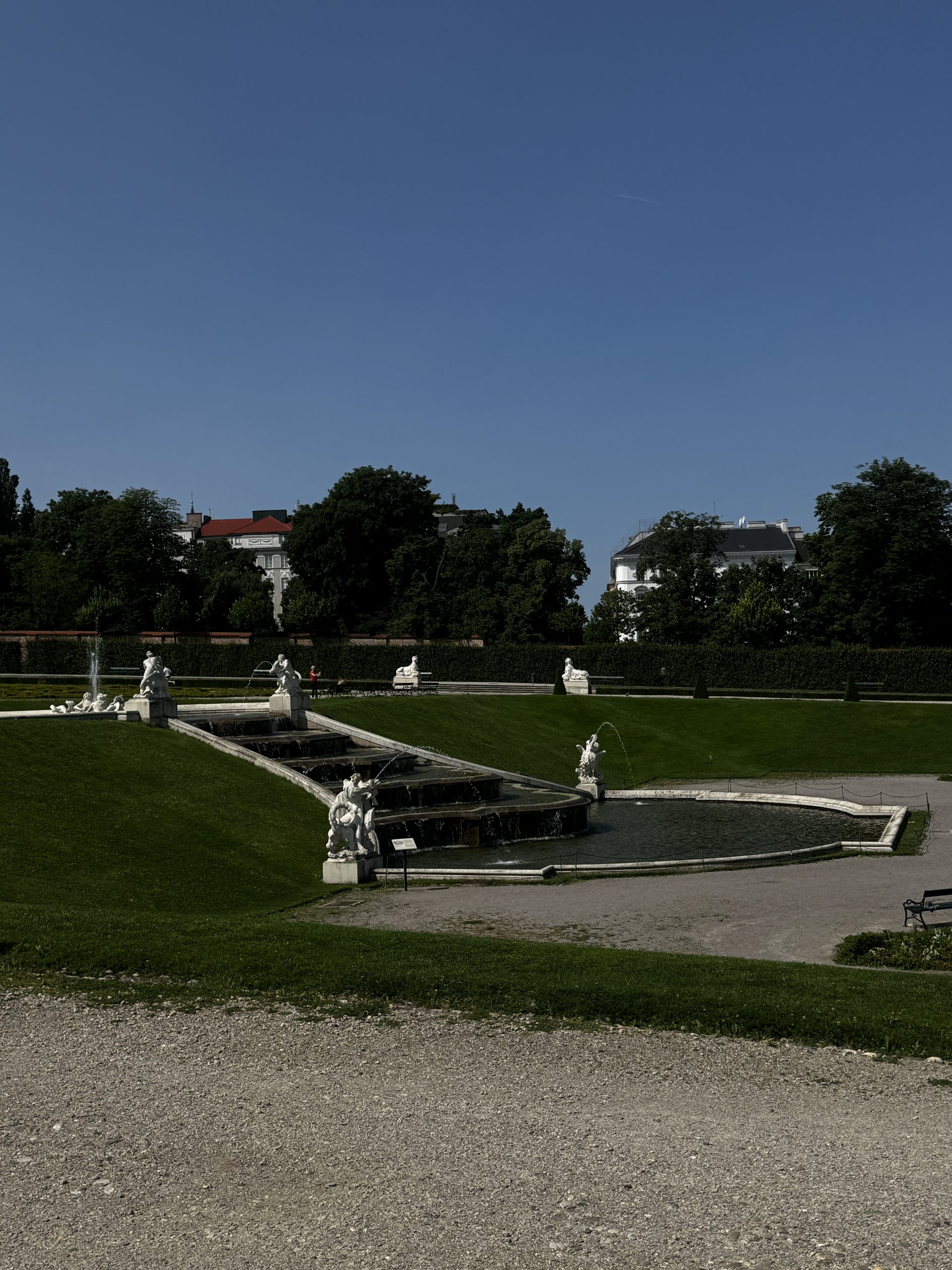Ein besonderes Highlight ist der weitläufige Schlossgarten. Die symmetrisch angelegten Wege, kunstvoll gestalteten Blumenbeete, Brunnen und Skulpturen schaffen eine ruhige und zugleich repräsentative Atmosphäre. Beim Spaziergang durch den Garten eröffnen sich immer wieder wunderschöne Blickachsen auf das Schloss und die Wiener Stadtkulisse. Der Garten lädt dazu ein, innezuhalten, die Umgebung bewusst wahrzunehmen und den Moment zu genießen.